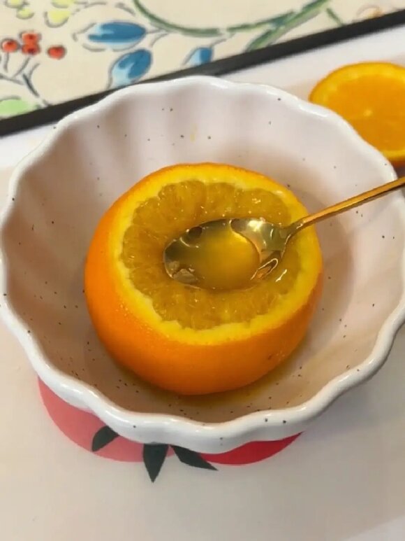 第3呢是蒸橙子,橙子的皮里面的橙子油啊,是鎮(zhèn)咳藥的重要成分。橙子性偏涼,有潤肺止咳的功效。