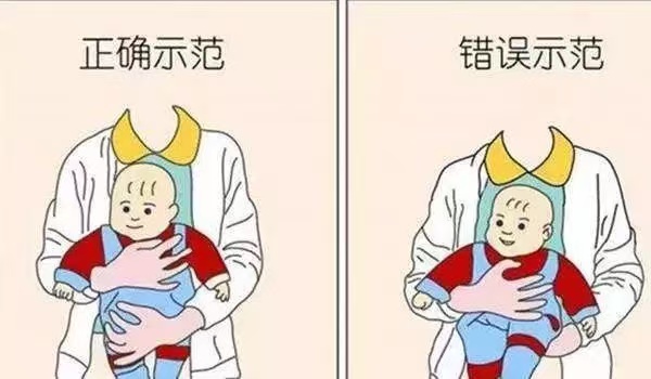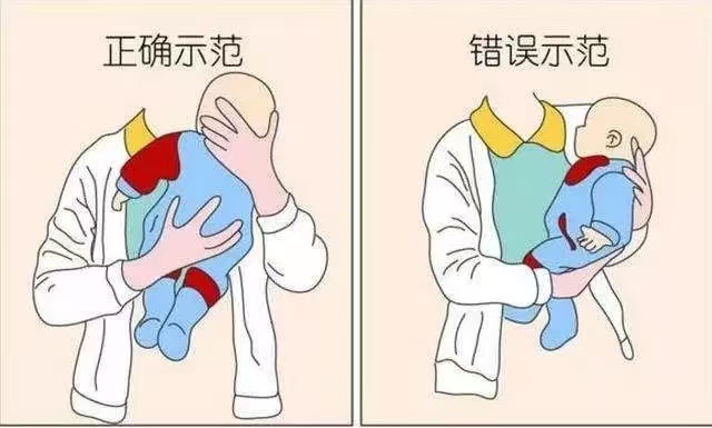 注意:千萬不能采用豎抱的方式,因為這個時候,寶寶的脊椎還無法支撐起寶寶的身體和頭部。容易讓寶寶受傷。